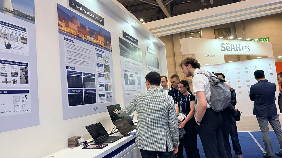 시버리솔루션스는 이번 전시에서 원자력 발전소 방사선 작업자의 피폭선량을 사전에 예측하고 최적화하는 3D 시뮬레이션 기반 통합 관리 플랫폼 DoseSim NXT-ALARA를 선보였습니다.